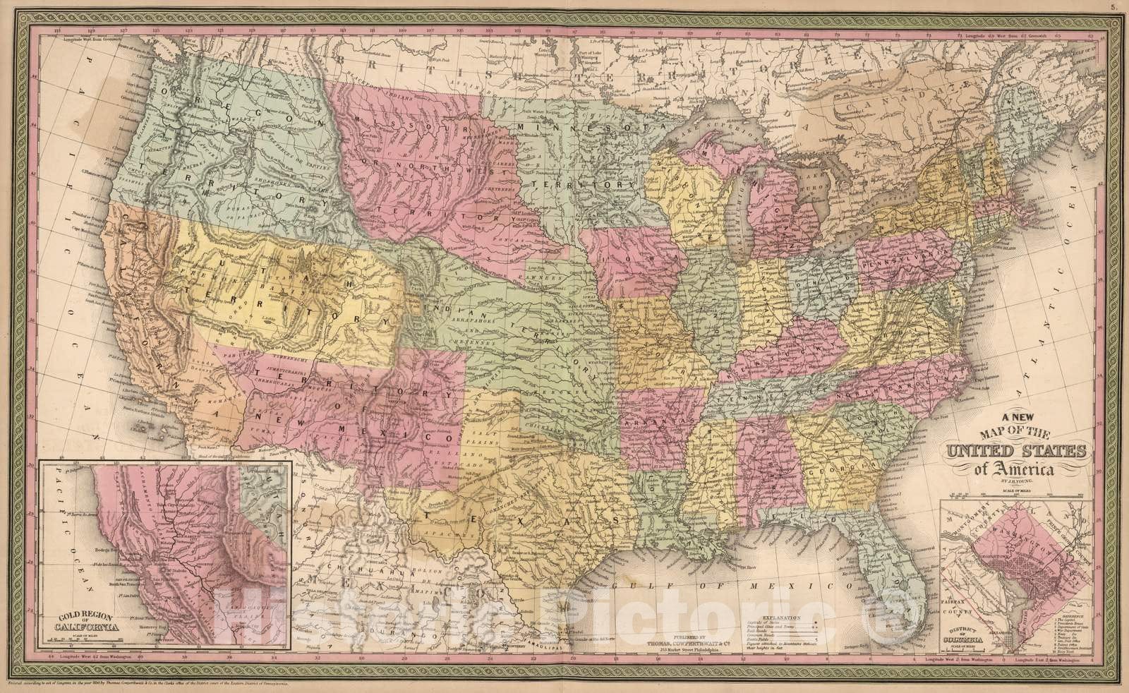 Historic Map : 1853 A New Map of The United States of America - Vintage Wall Art