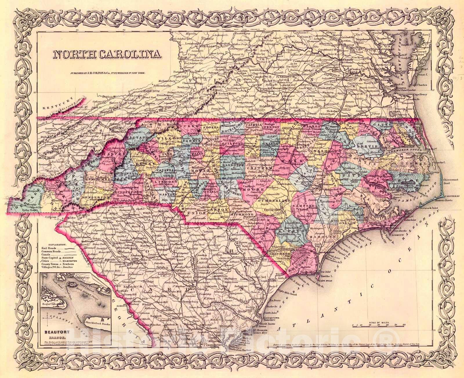Historic Map : 1854 North Carolina : Vintage Wall Art