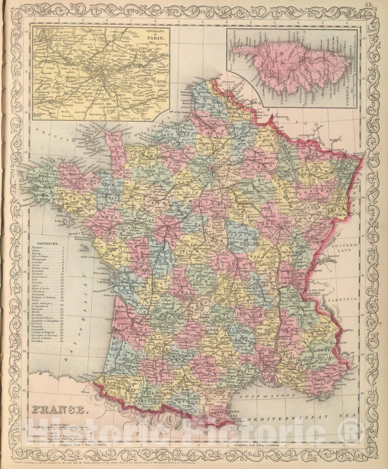 Historic Map : 1859 France. v2 - Vintage Wall Art