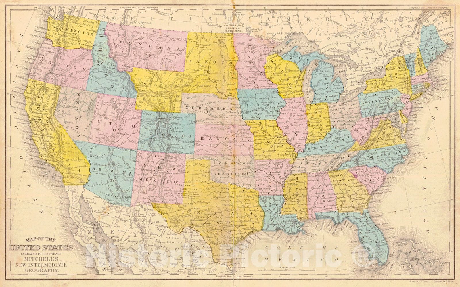 Vintage Map | 1865 Map of the United States | Young, James H.