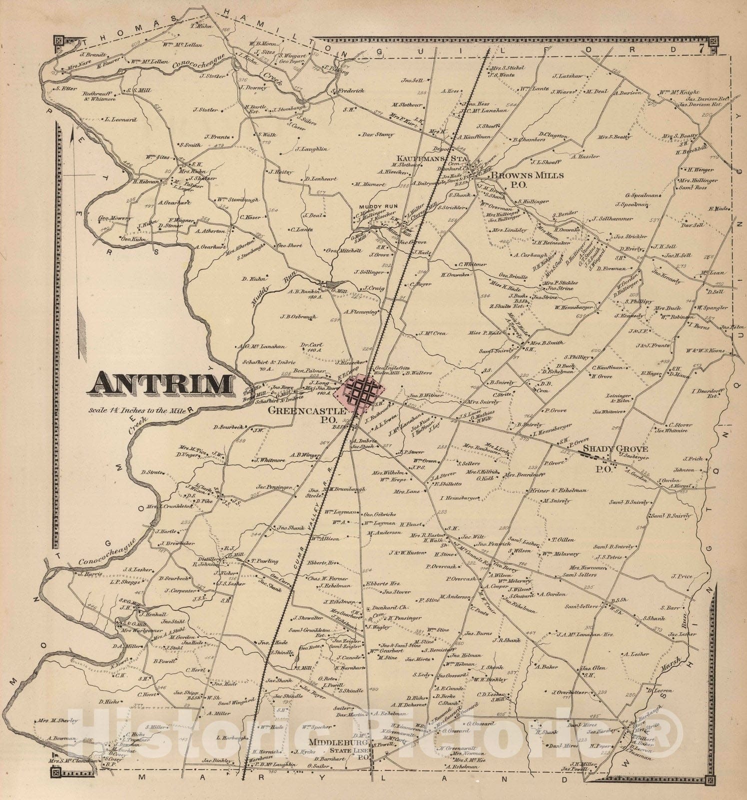 Historic Map : 1868 Antrim, Franklin County, Pennsylvania. - Vintage Wall Art