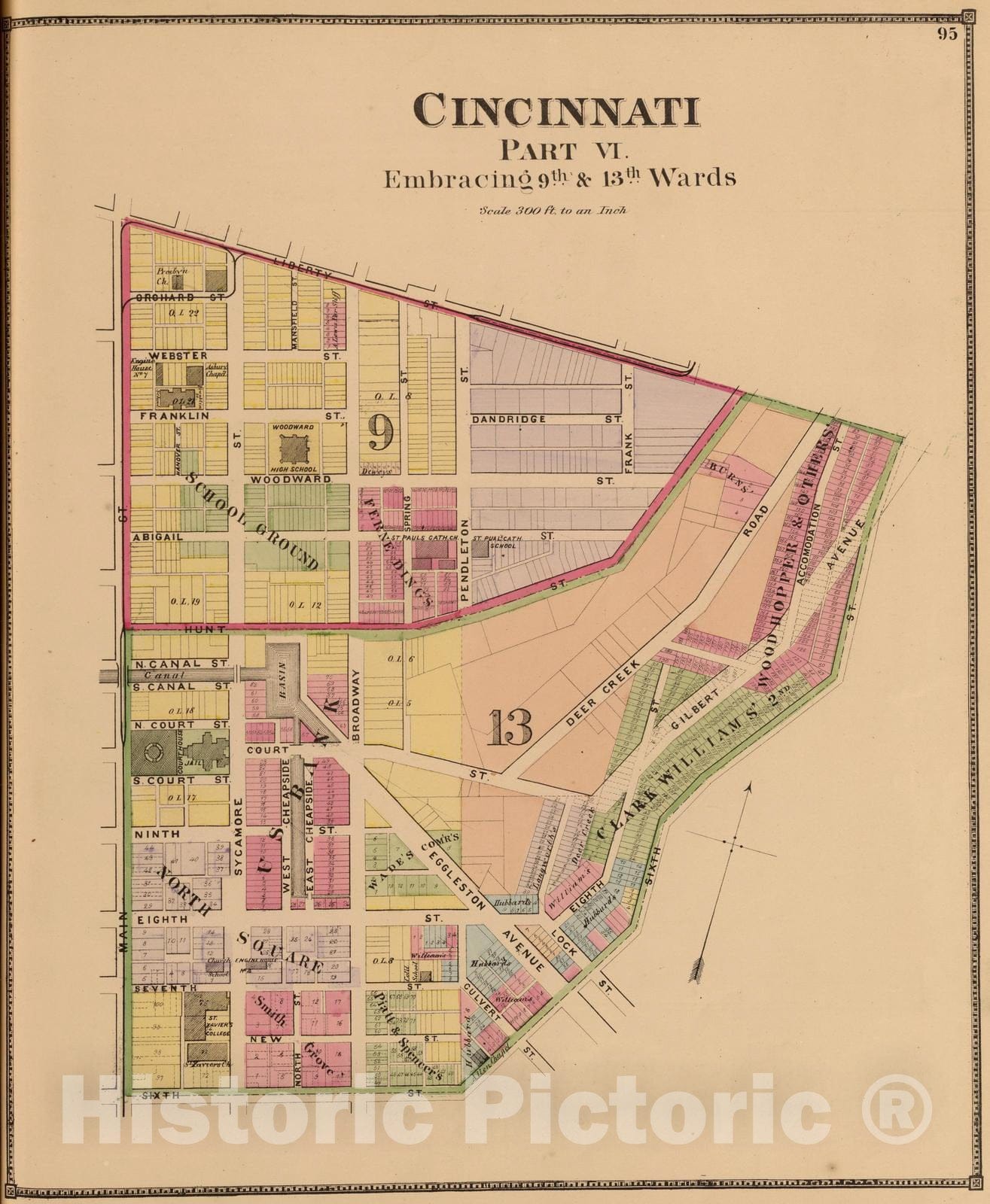 Historic Map : 1869 Cincinnati 6, wards 9, 13. - Vintage Wall Art