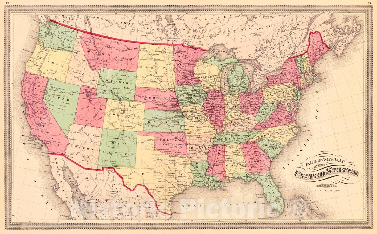 Historic Map : 1870 Railroad Map of the United States : Vintage Wall Art