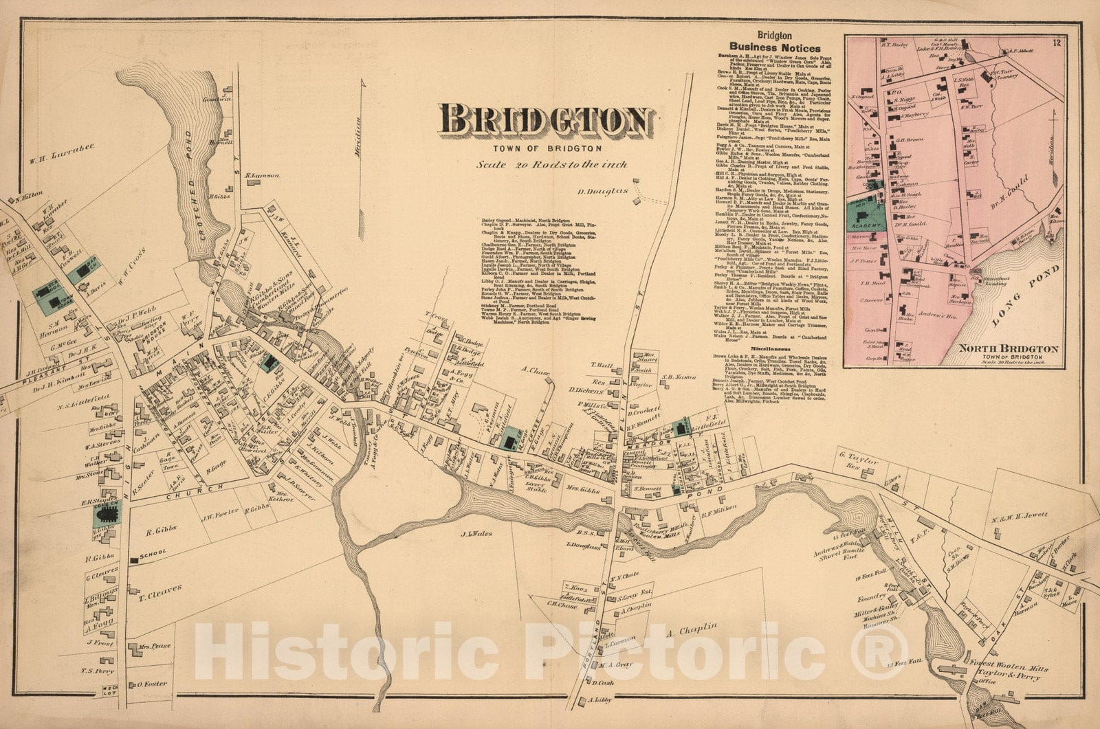 Historic Map : 1871 Bridgton, Cumberland County, Maine. North Bridgton. - Vintage Wall Art