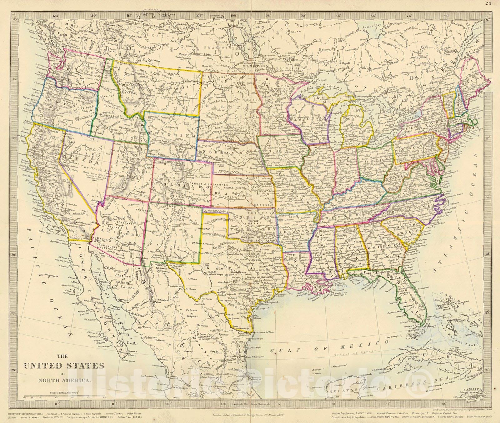 Historic Map : 1872 The United States of North America : Vintage Wall Art