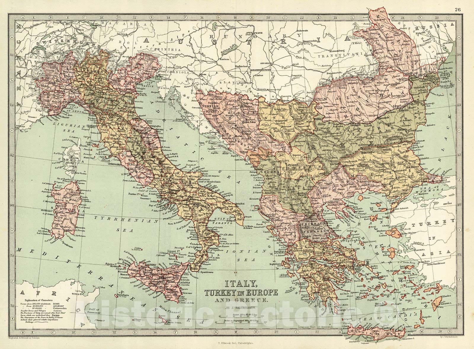 Historic Map : 1873 Italy, Turkey in Europe and Greece : Vintage Wall Art