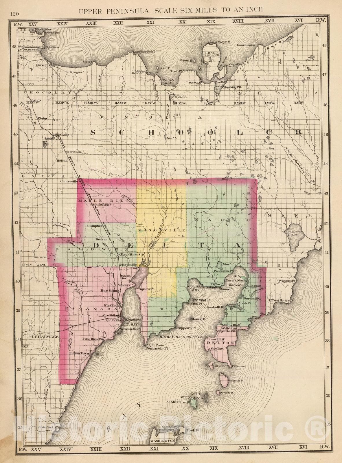 1873 Upper Peninsula, scale six miles to an inch (Delta County)
