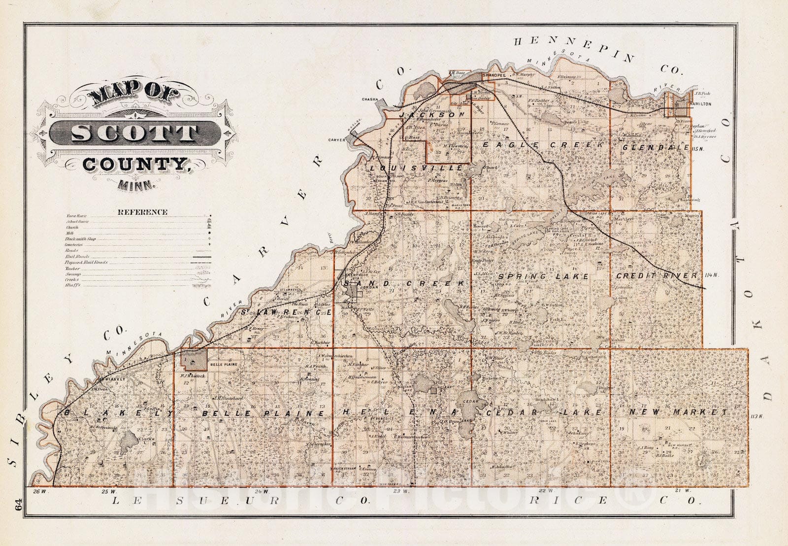 Historic Map : 1874 Map of Scott County, Minn. - Vintage Wall Art