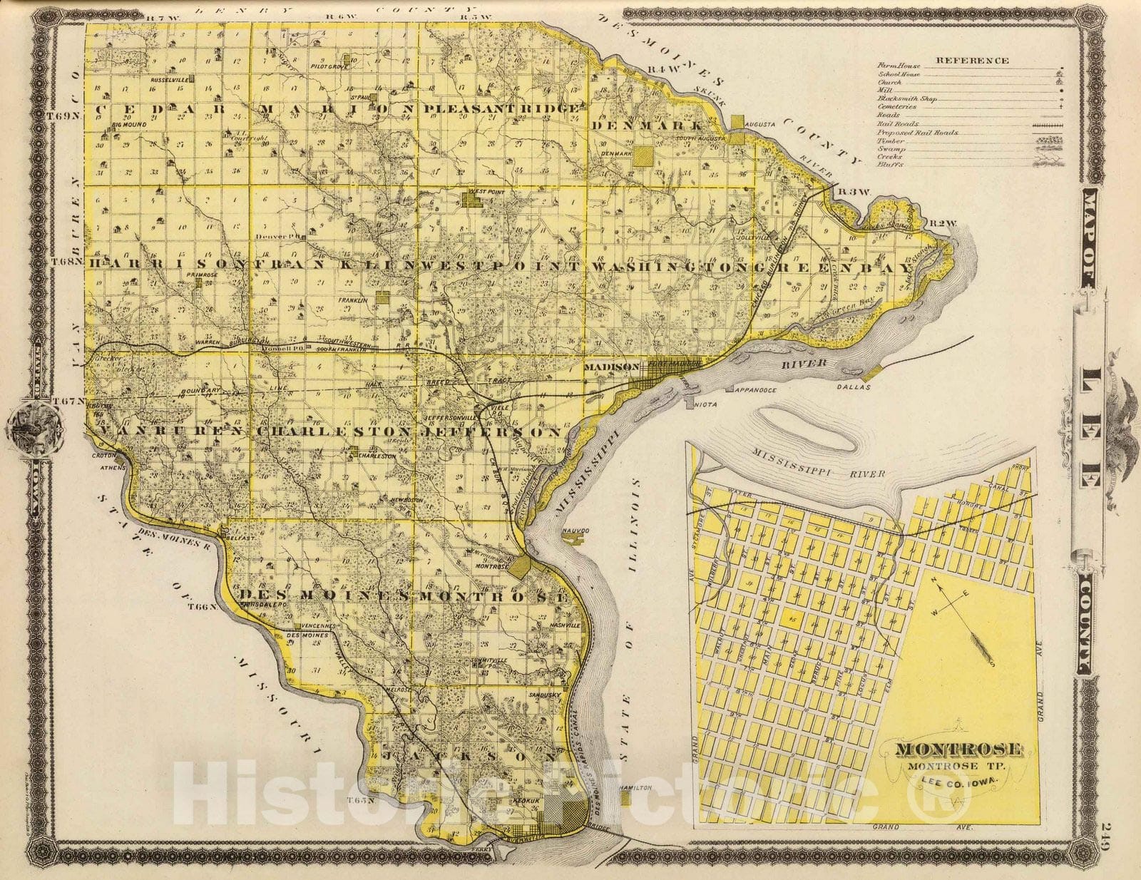 Historic Map : 1875 Map of Lee County and Montrose, State of Iowa. - Vintage Wall Art
