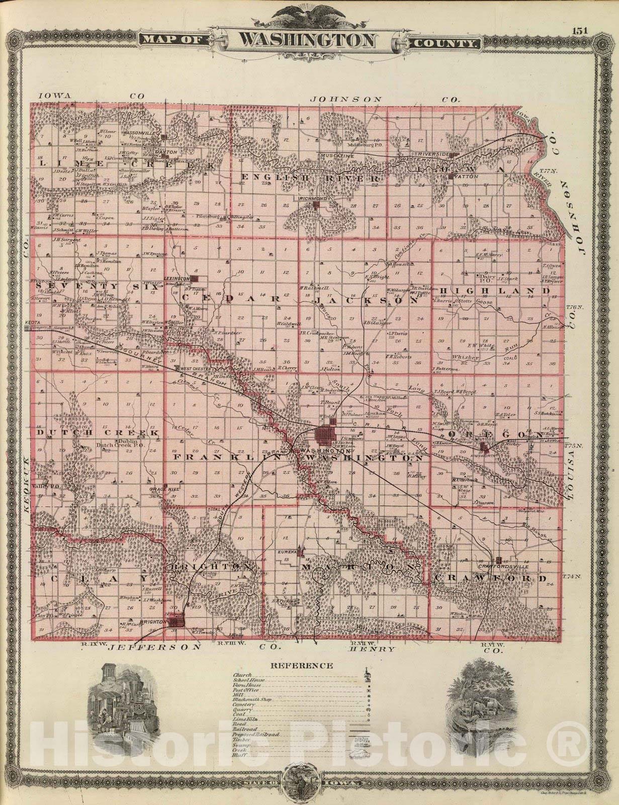 Historic Map : 1875 Map of Washington County, State of Iowa. - Vintage Wall Art