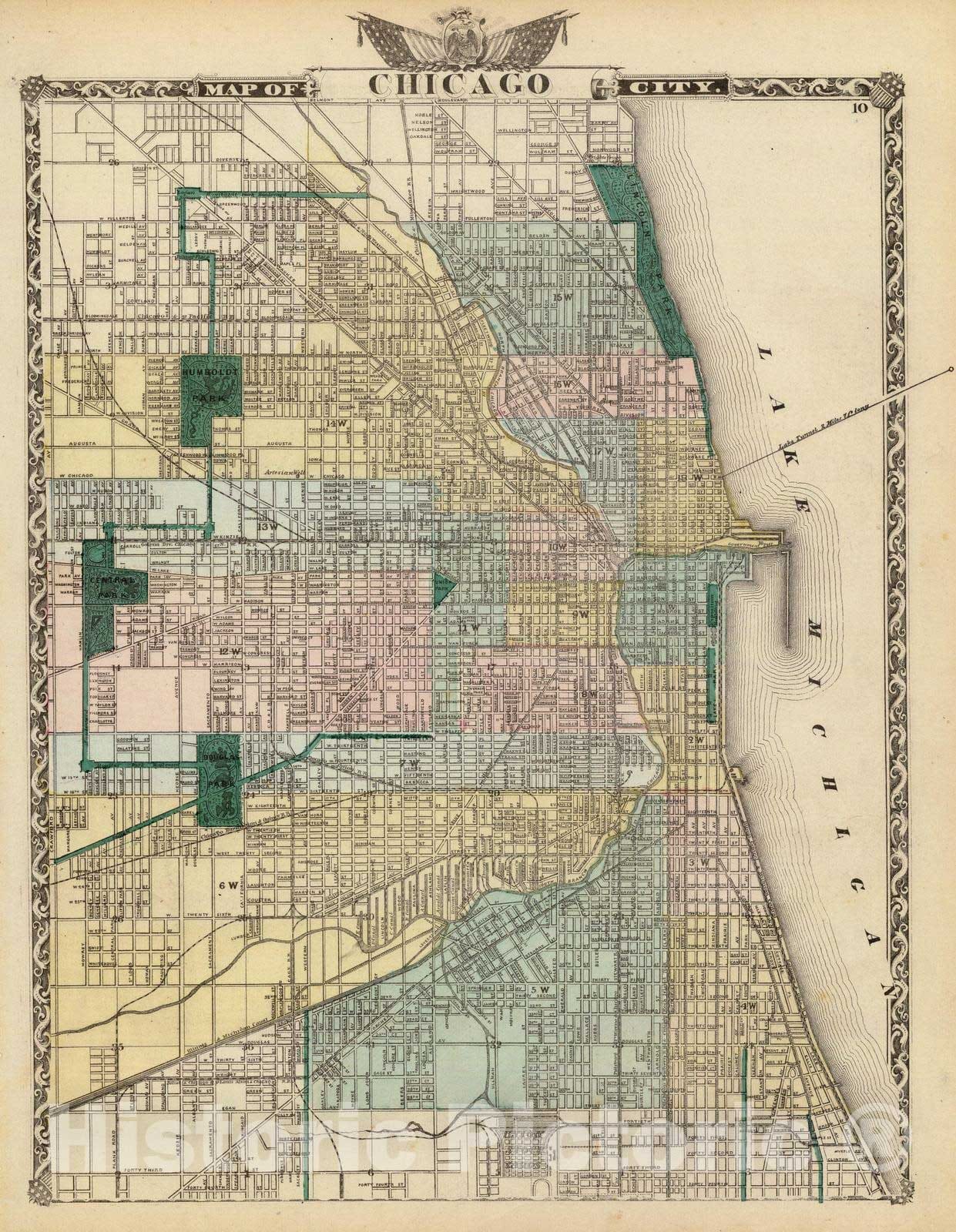 Historic Map : 1876 Map of Chicago City. - Vintage Wall Art