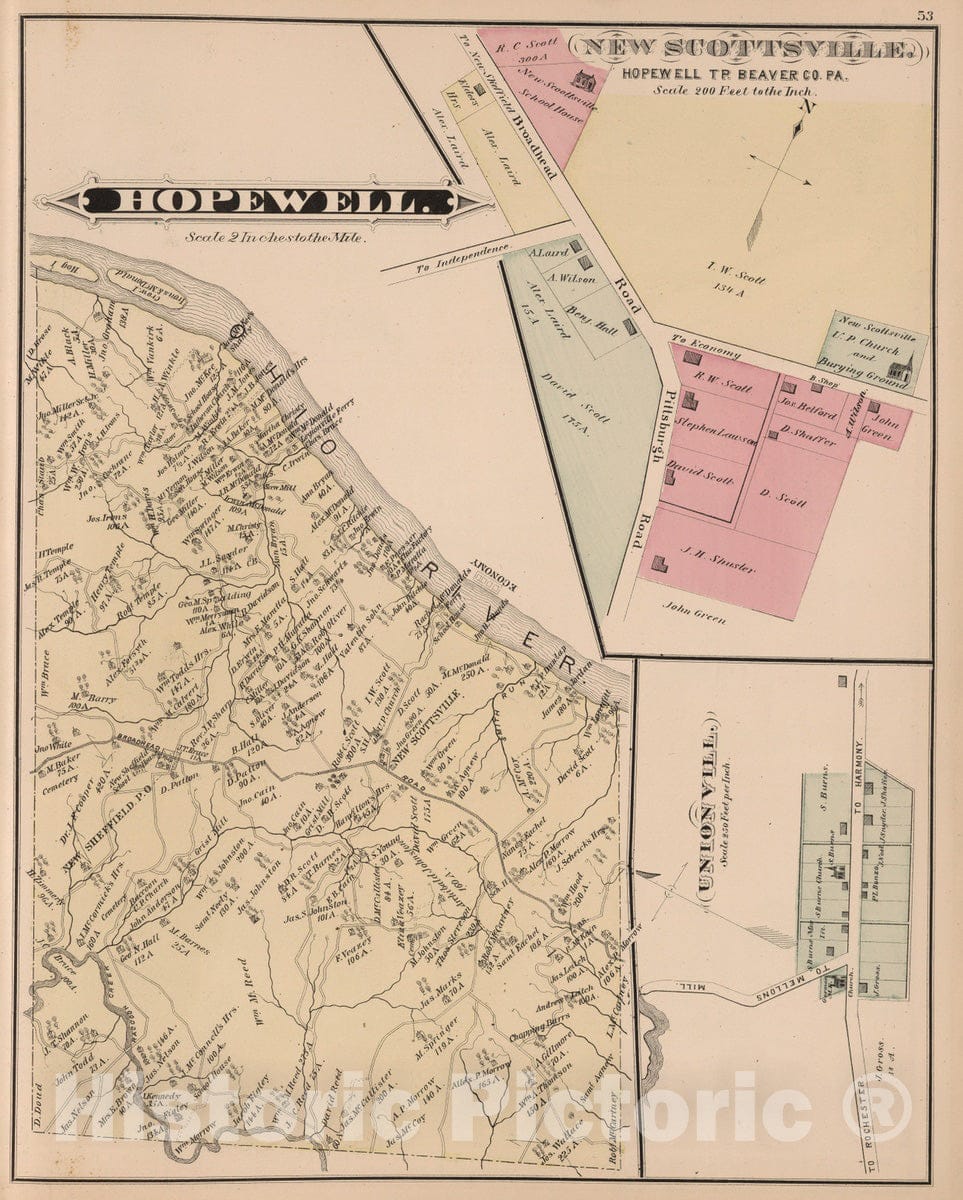Historic Map : 1876 Hopewell Township, Beaver County, PA. - Vintage Wall Art