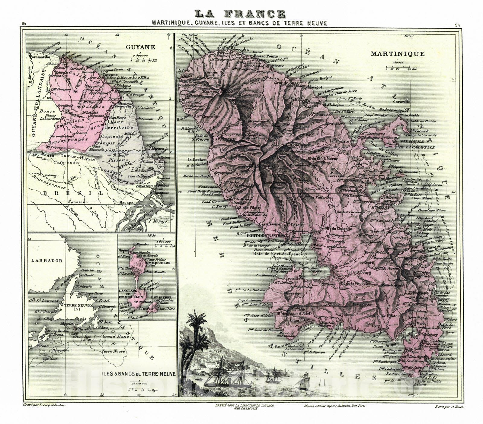 Vintage Map | 1880 La France - Martinique, Guyane, Iles et Bancs de Terre Neuve | Migeon, J.
