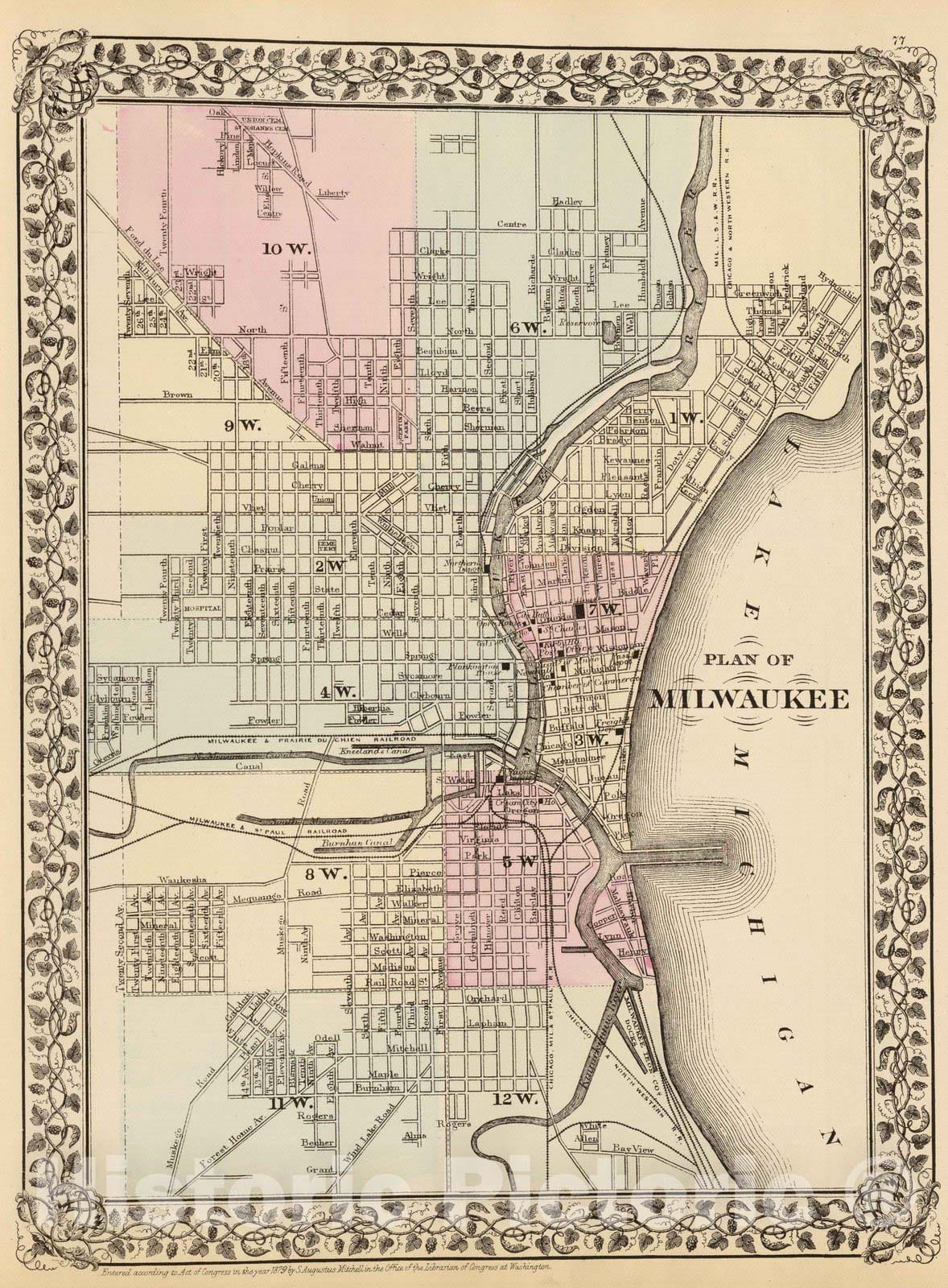 Historic Map : 1880 Milwaukee. - Vintage Wall Art