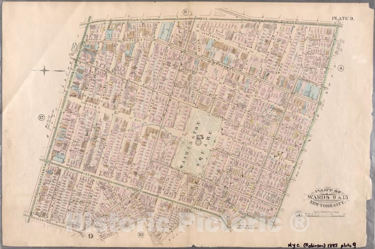 Historic Map - 1885 New York (N.Y.) Plate 9: Fourth, Bowery, E. Houston, W. Houston, Hancock, Bleecker, Sixth, W. Fourth, Grove, Wrly Place, Perry, Greenwich