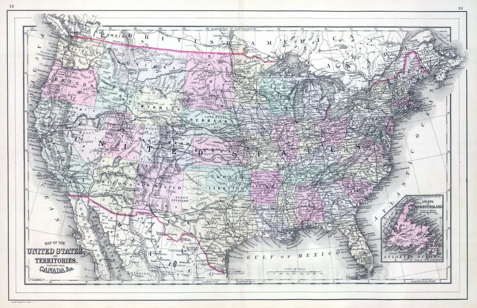 Historic Map : 1886 United States. v1 - Vintage Wall Art