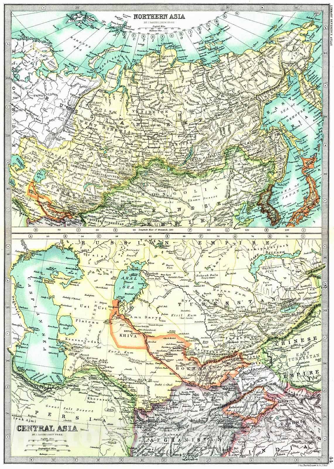 Vintage Map | 1890 Northern Asia, Central Asia | Bartholomew, John