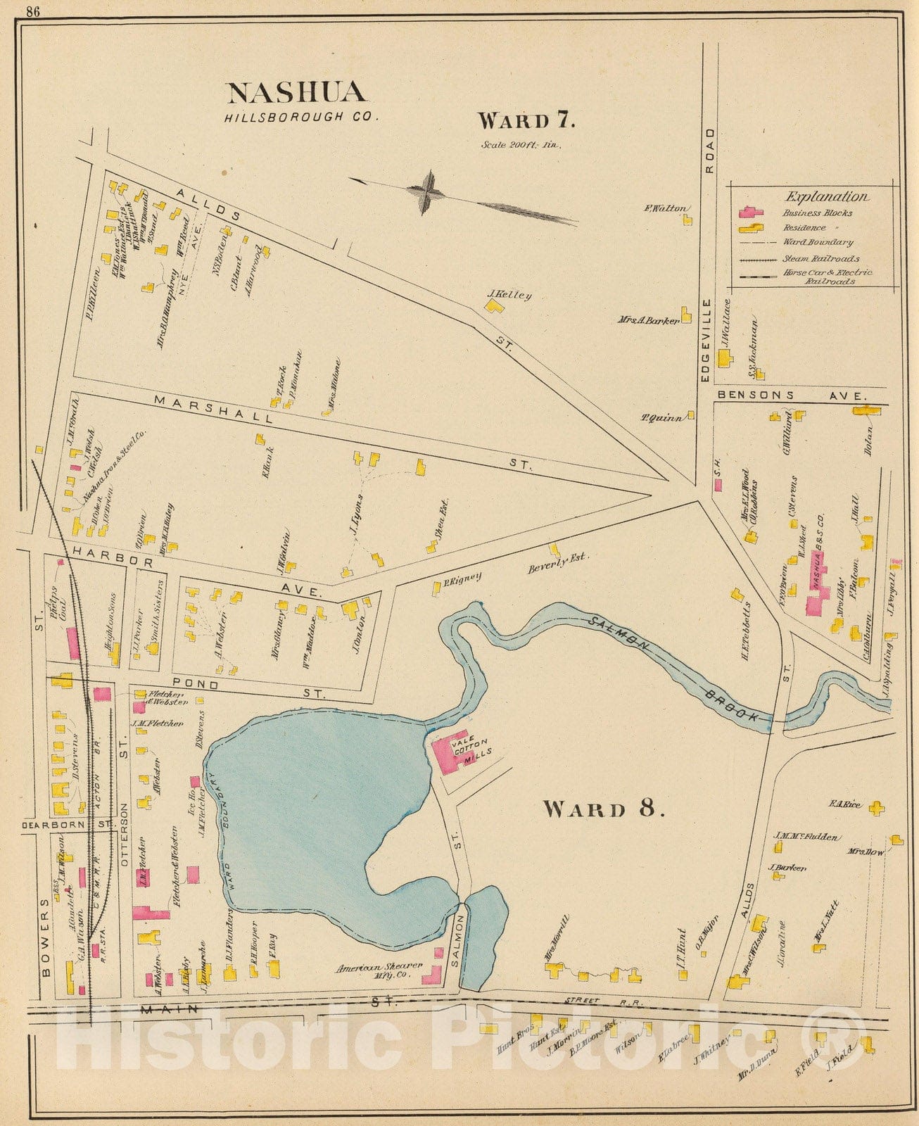Historic Map : 1892 Nashua, Ward 7-8. - Vintage Wall Art