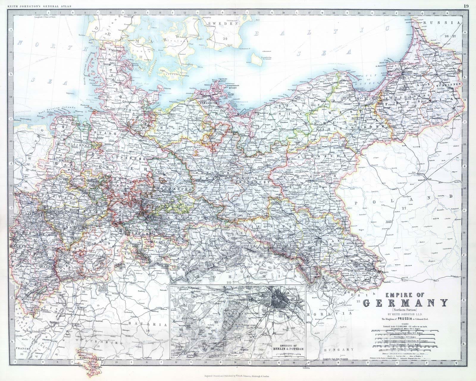 Historic Map : 1893 Empire of Germany (northern portion). - Vintage Wall Art