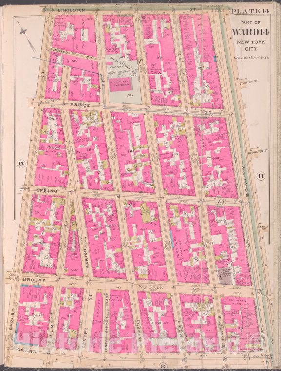 Historic Map - 1893 New York (N.Y.), Plate 14 [E. Houston St, Bowery, Grand St, Crosby St.]