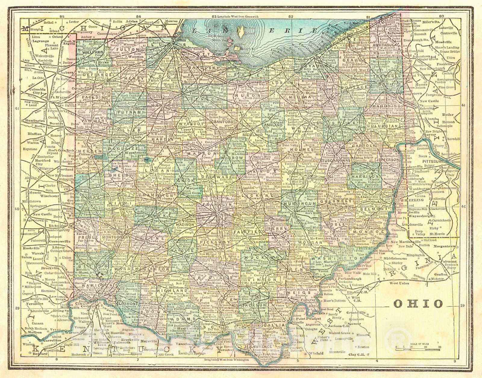 Historic Map : 1893 Ohio : Vintage Wall Art