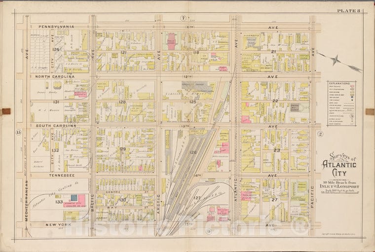 Historic Map - 1896 Atlantic City, New Jersey (N.J.), Double Page Plate No. 8 [Pennsylvania Ave, Pacific Ave, New York Ave, Mediterranean Ave.]