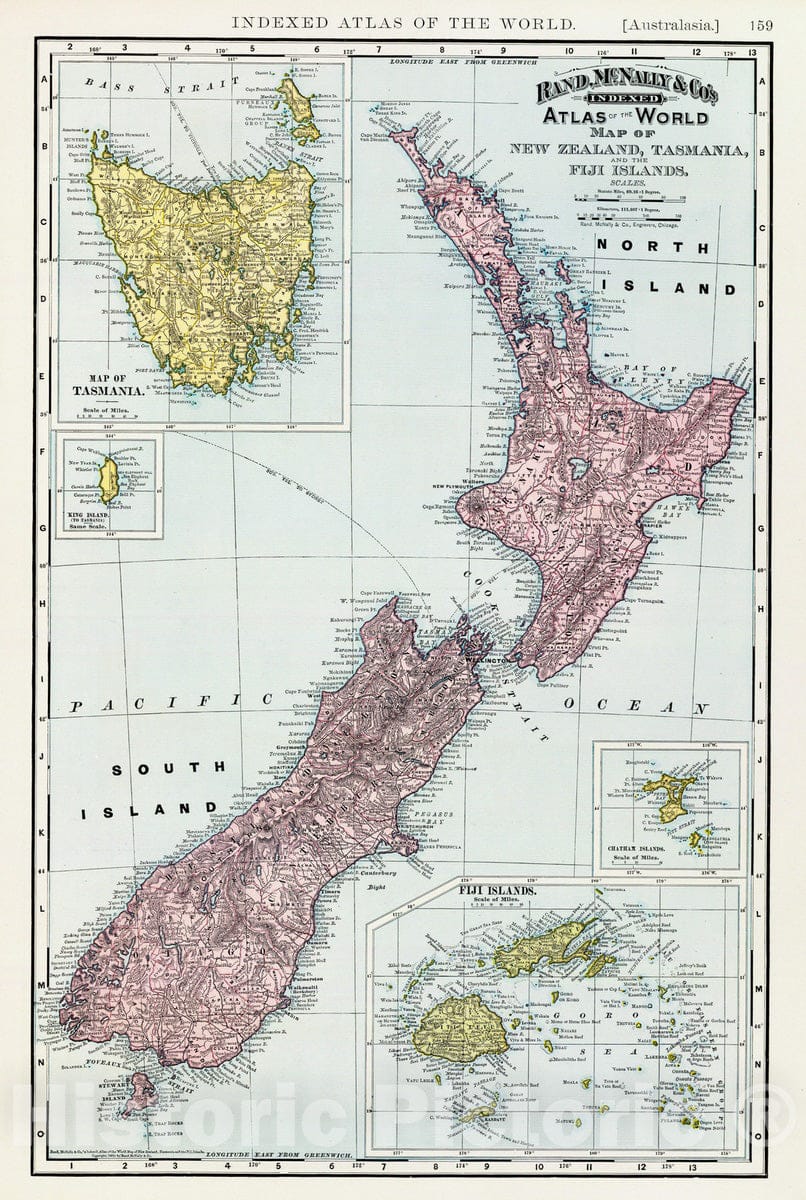 Historic Map : 1897 New Zealand, Tasmania, Fiji. - Vintage Wall Art
