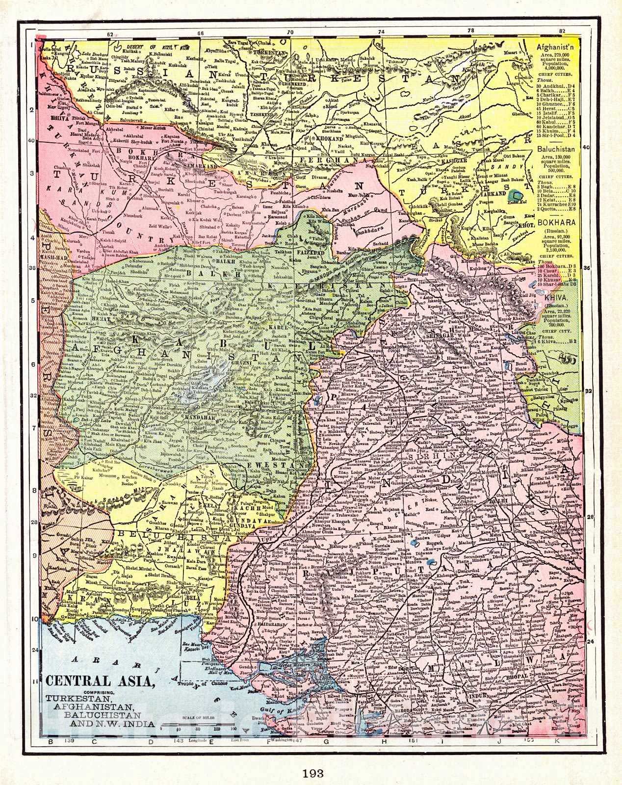 Historic Map : 1898 Central Asia (Turkestan, Afghanistan, Baluchistan, and N.W. India) : Vintage Wall Art
