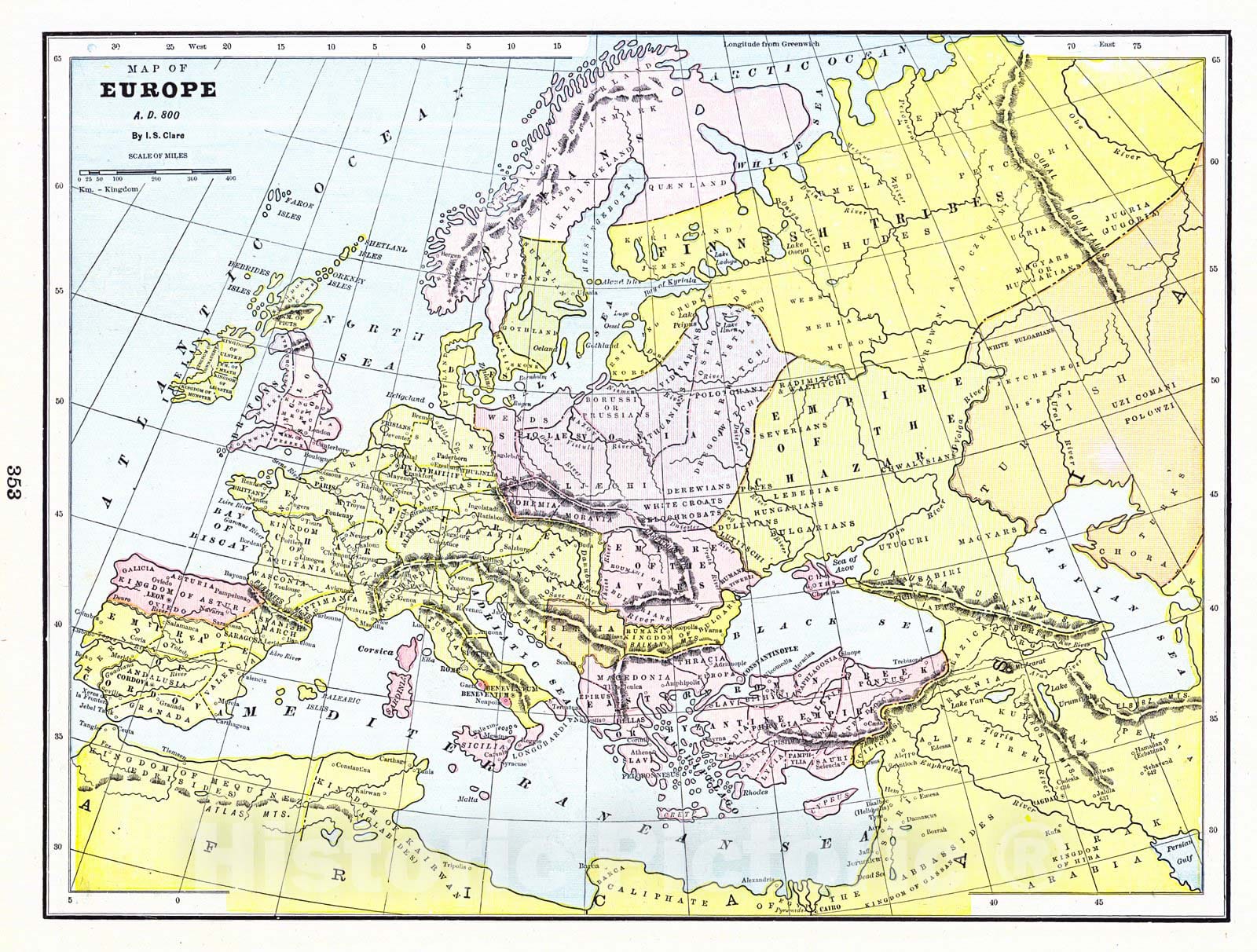 Historic Map : 1898 Map of Europe, A.D. 800 : Vintage Wall Art