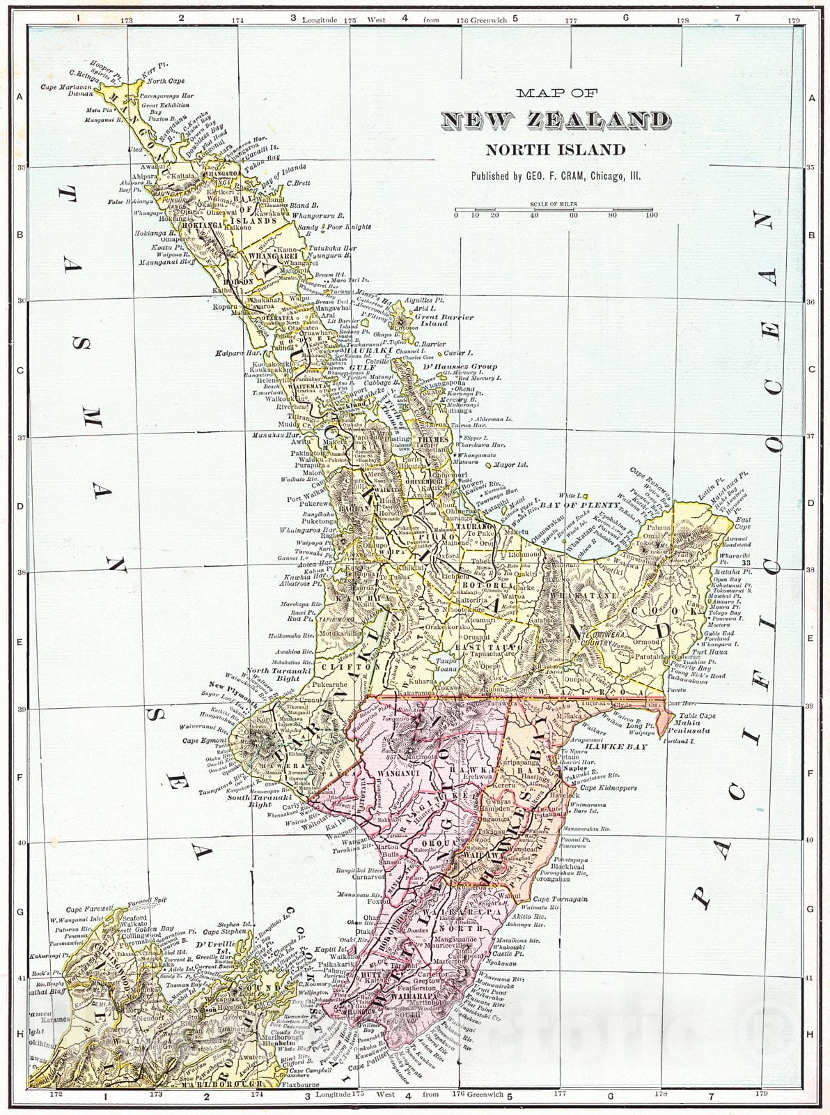 Vintage Map | 1900 New Zealand (North Island) | Cram, George F.