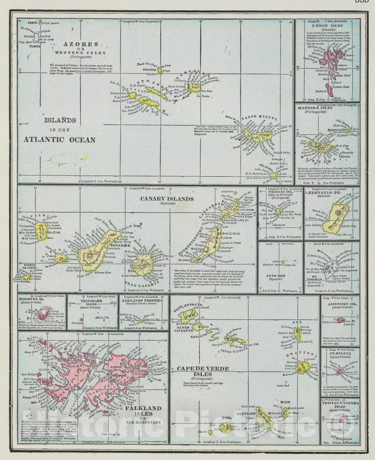 Historic Map : 1901 Islands in the Atlantic Ocean. - Vintage Wall Art