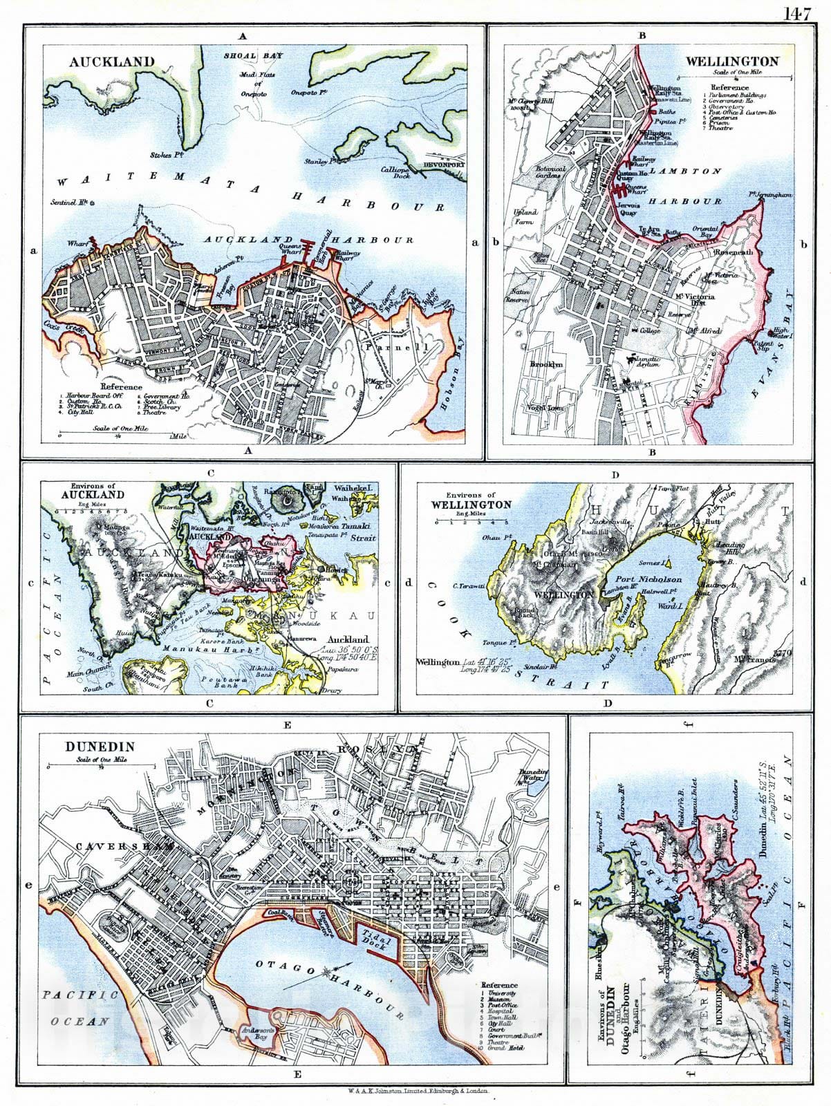 Historic Map : 1901 [Major Cities of New Zealand] : Vintage Wall Art