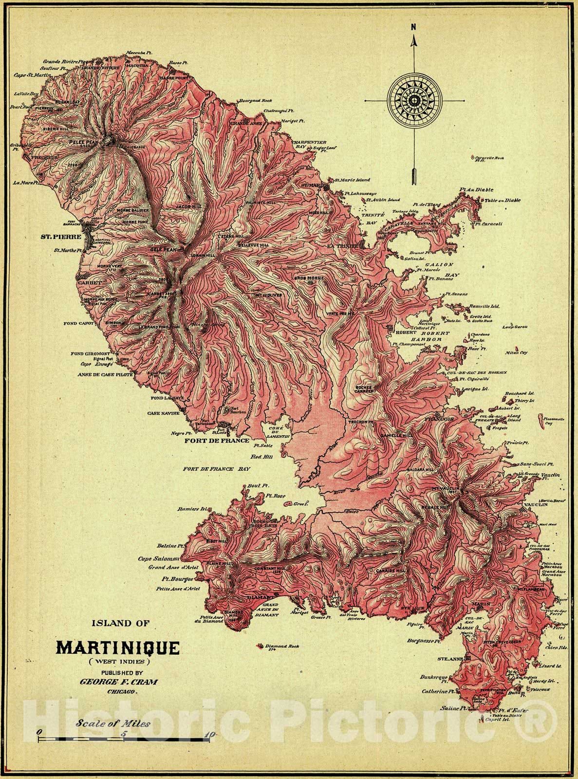 Vintage Map | 1907 Island of Martinique | Cram, George F.