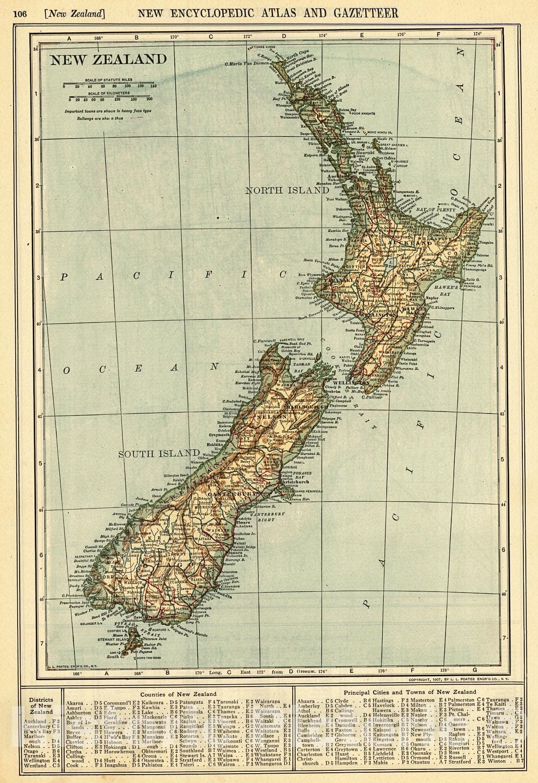 Vintage Map | 1909 New Zealand | Patten, William and J.E. Homas