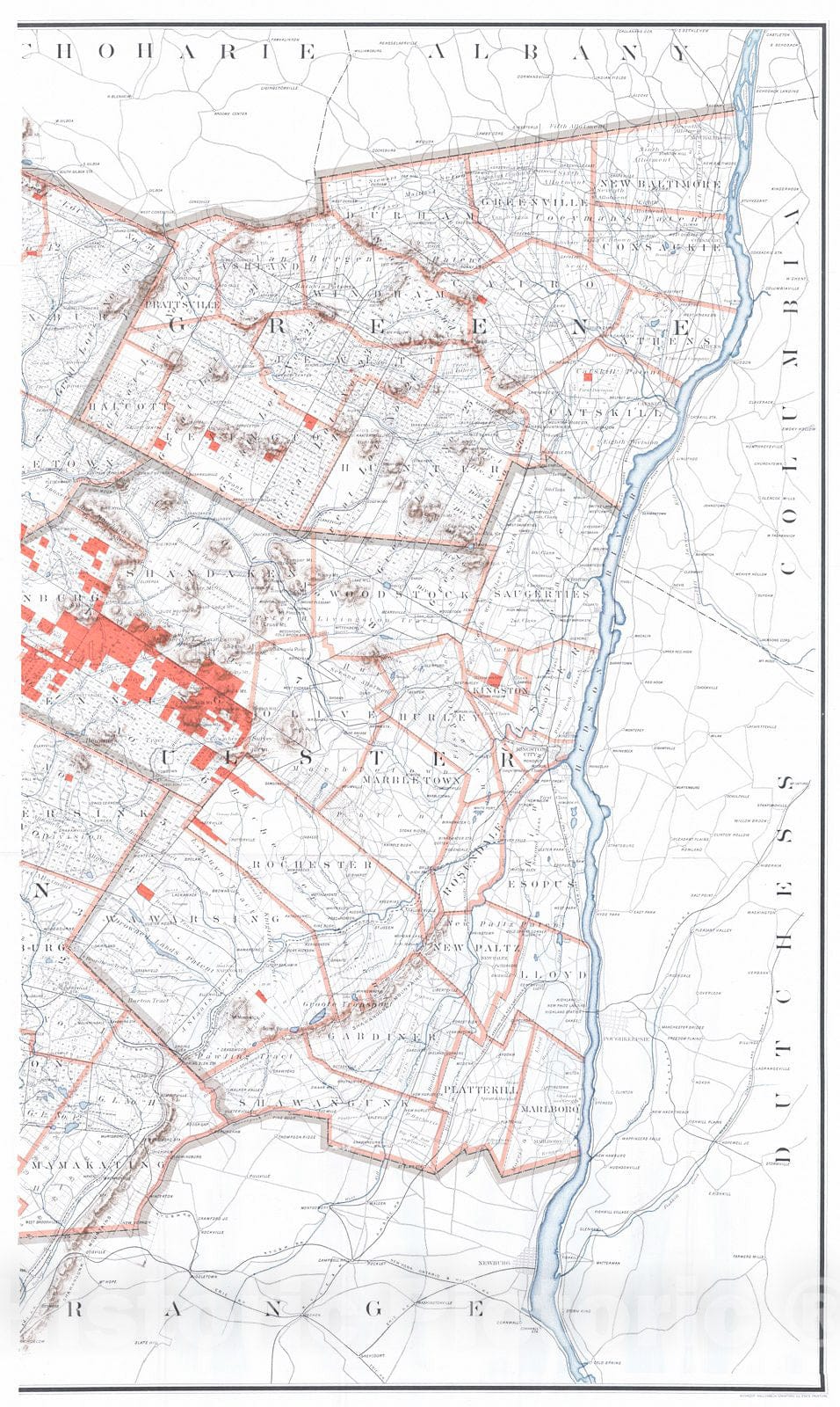 Vintage Map | 1910 [Eastern Half of ] Map of the Catskill Region State of New York |