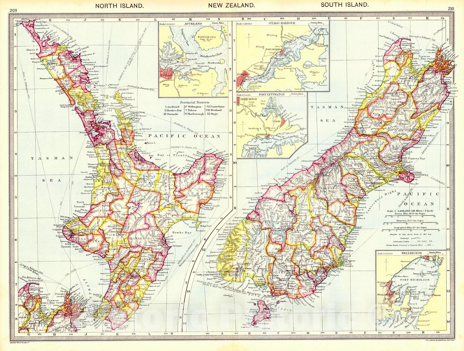Historic Map : 1910 North and South Island, New Zealand : Vintage Wall Art