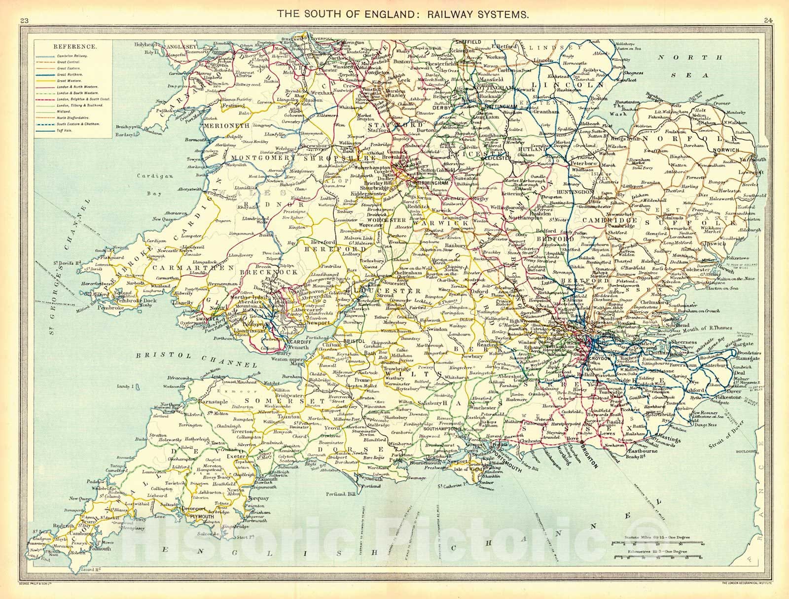 • .Historic Map : 1910 The South of England: Railway System  : Vintage Wall Art
