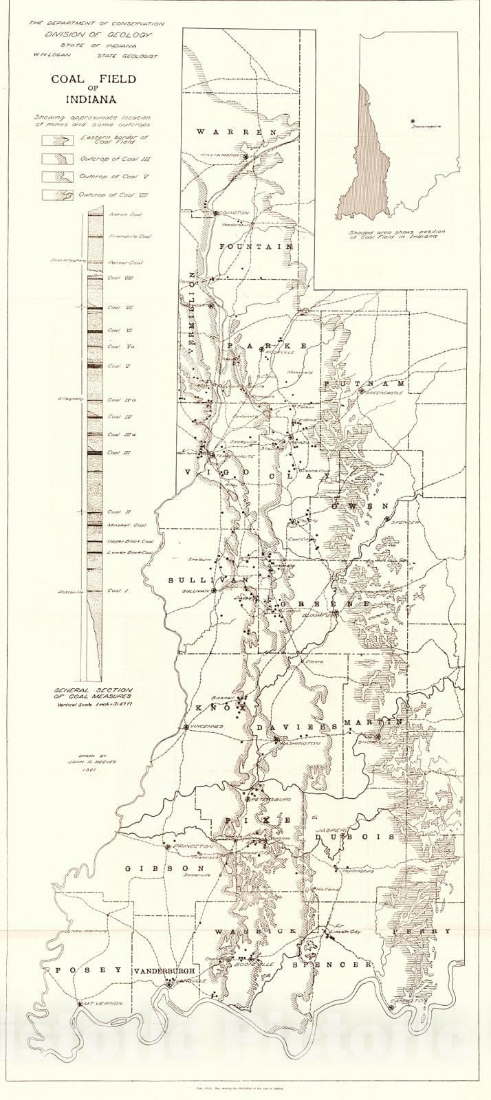 Vintage Map | 1921 Coal Field of Indiana | Reeves, John R.