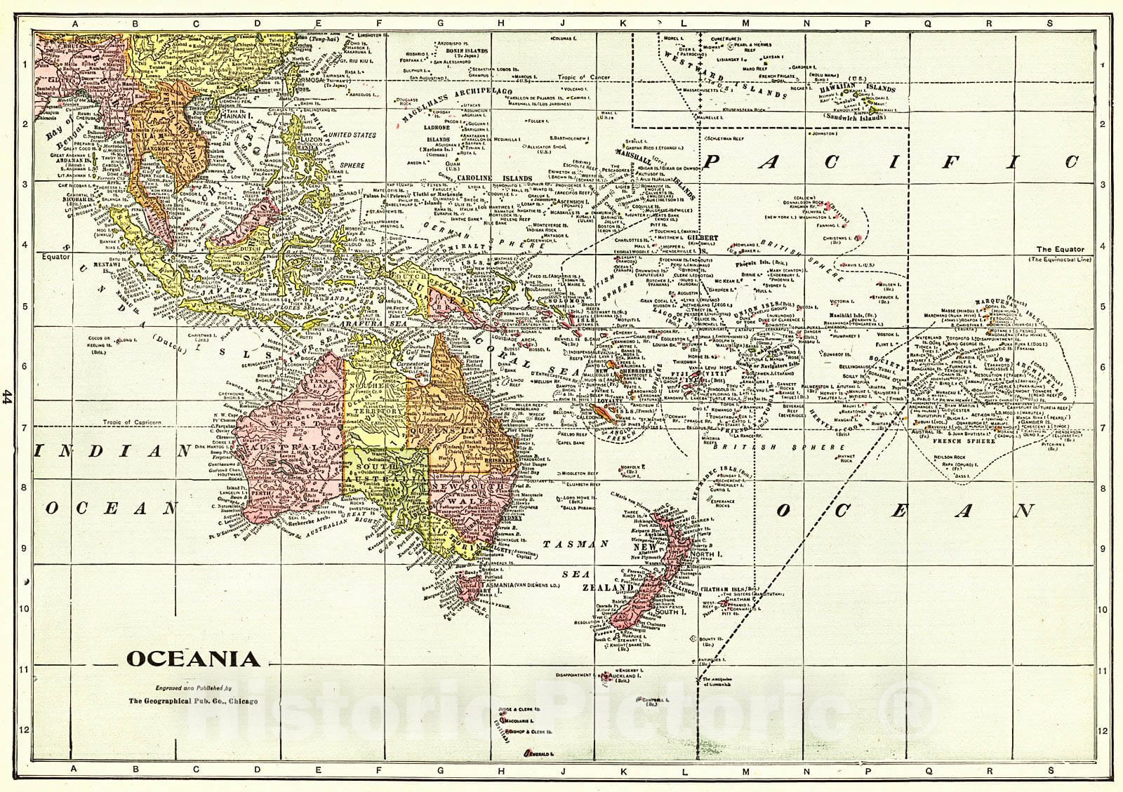 Historic Map : 1922 Oceania : Vintage Wall Art