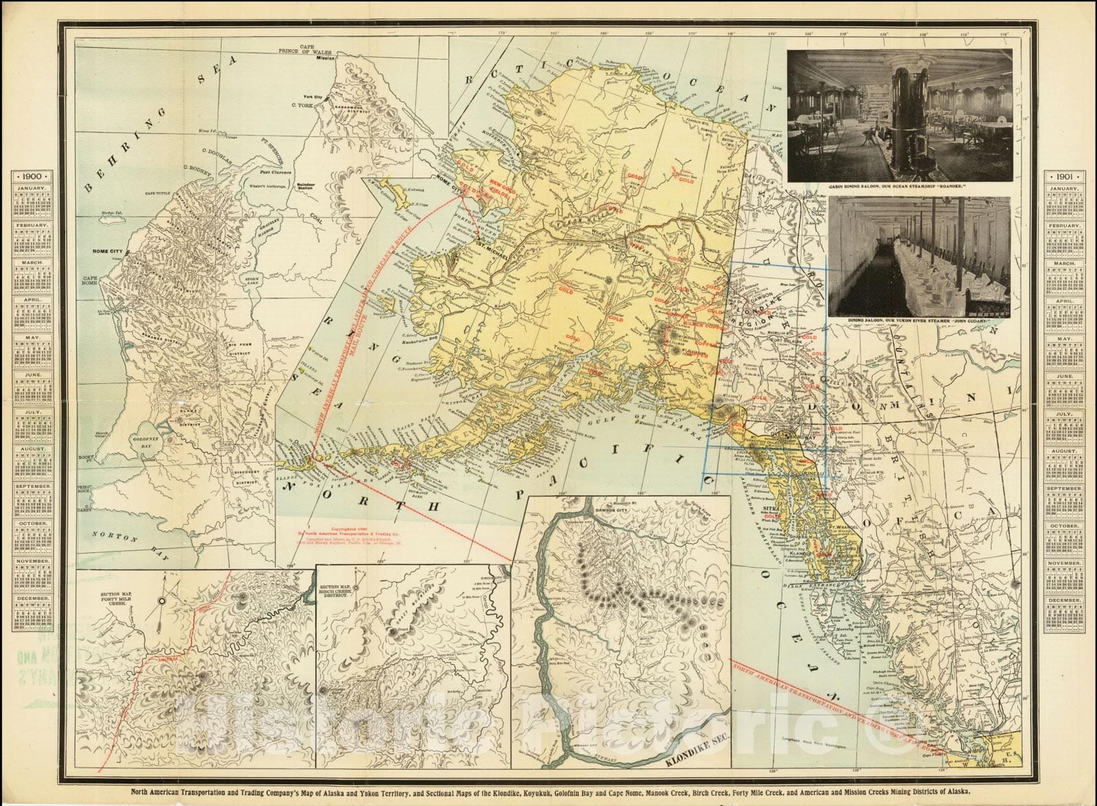 Historic Map : Map of Alaska and Yukon Territory, and Sectional Maps of the Klondike, Koyukuk, Golfin Bay and Cape Nome, Manook Creek, Birch Creek, 1900, Vintage Wall Art