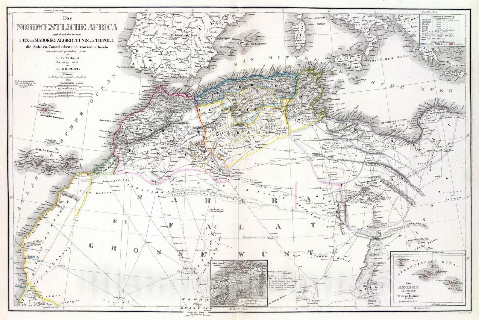Historic Map : Algeria; Morocco, Africa, North 1854 Nordwest. Africa. , Vintage Wall Art