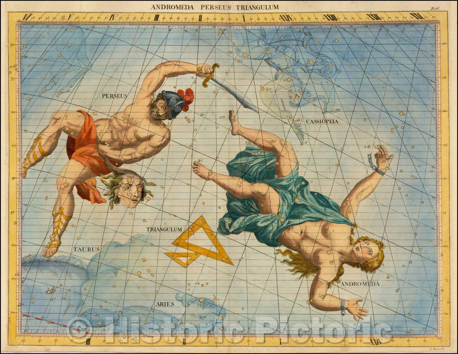 Historic Map - Andromeda, Perseus, Triangulum/Chart showing the constellations of Andromeda, Perseus, Triangulum, 1728, John Flamsteed - Vintage Wall Art