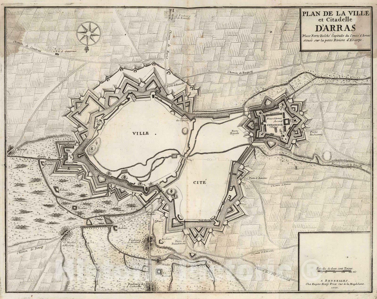 Historic Map : Arras , France, 1710 72. Plan de la Ville et Citadelle d'Arras, France. 1710. , Vintage Wall Art