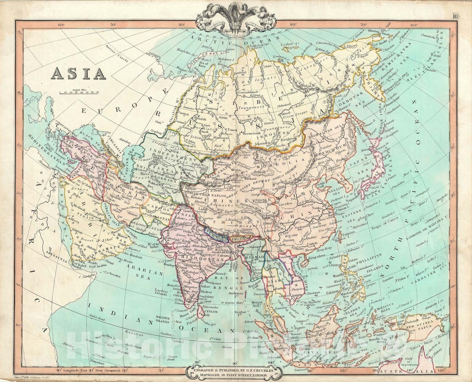 Historic Map : Asia, Cruchley, 1850, Vintage Wall Art