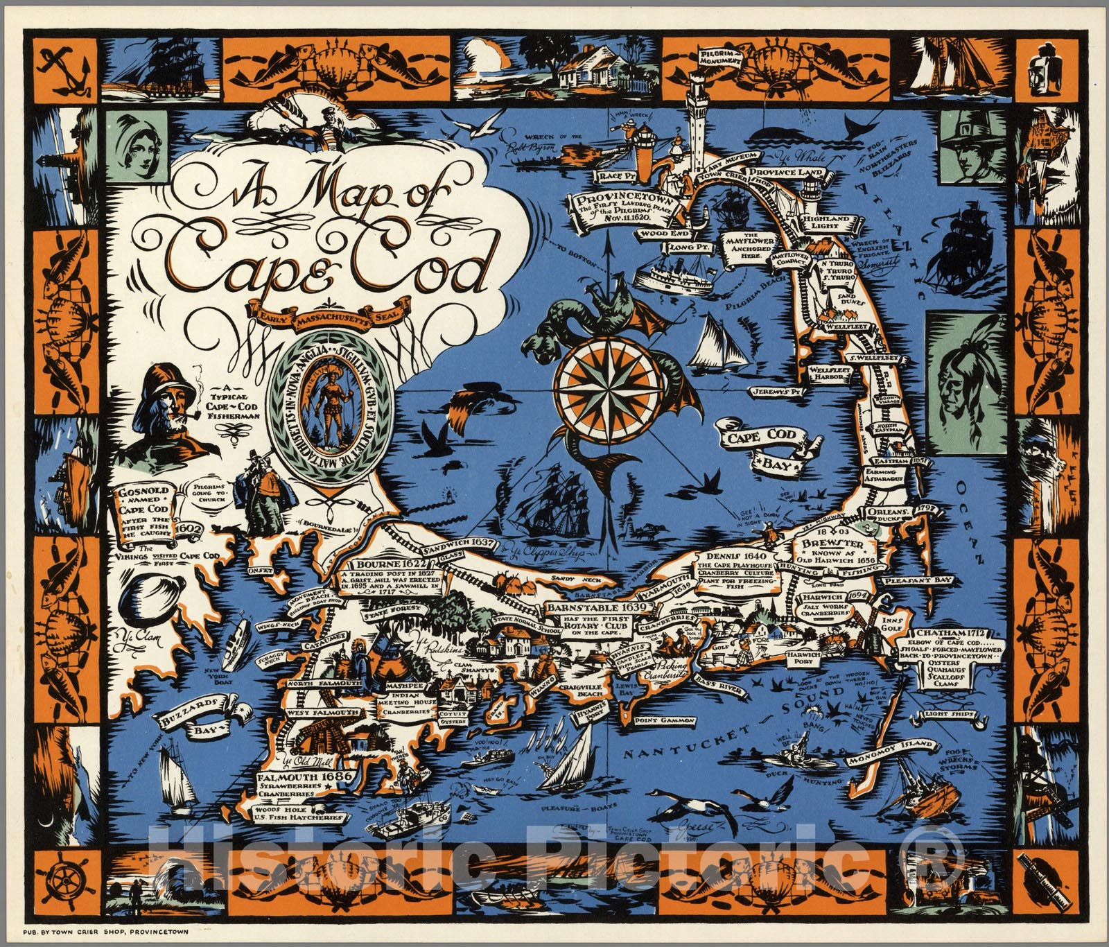 Historic Map : Cape Cod, 1930 - Vintage Wall Art