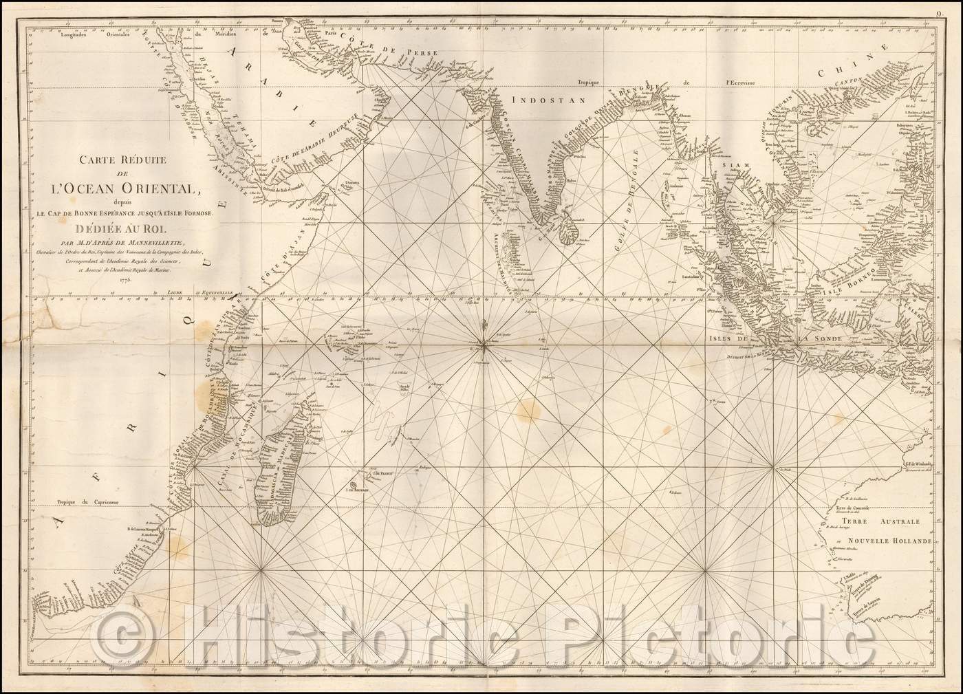 Historic Map - Carte Reduite de l'Ocean Oriental, depuis le Cap de Bonne Esp :: D'Apres De Mannevillette's Chart of the Indian Ocean, Neptune Orientale, 1775 - Vintage Wall Art