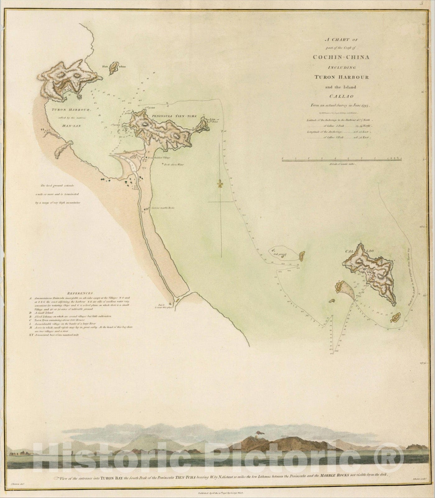 Historic Map : A Chart of Part of the Coast of Cochin-China Including Turon Harbour and the Island Callao (Vietnam Coastline), 1796, George L. Staunton, Vintage Wall Art