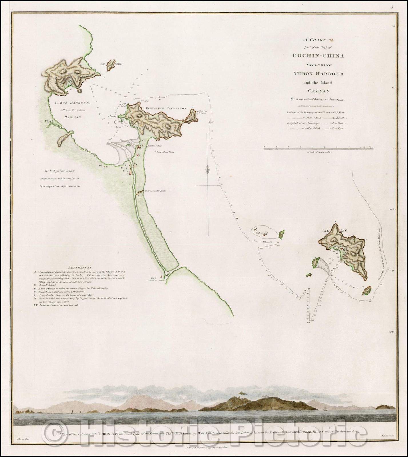 Historic Map - A Chart of Part of the Coast of Cochin-China Including Turon Harbour and the Island Callao (Vietnam Coastline), 1796, George L. Staunton - Vintage Wall Art