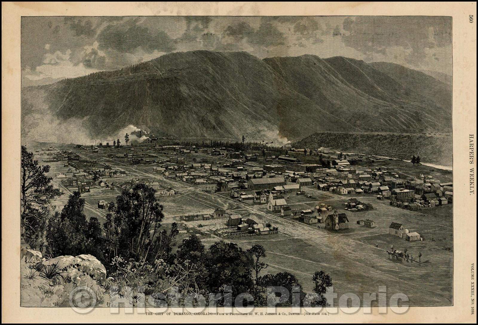 Historic Map - The City of Durango, Colorado - From a Photograph, 1889, Harper's Weekly - Vintage Wall Art
