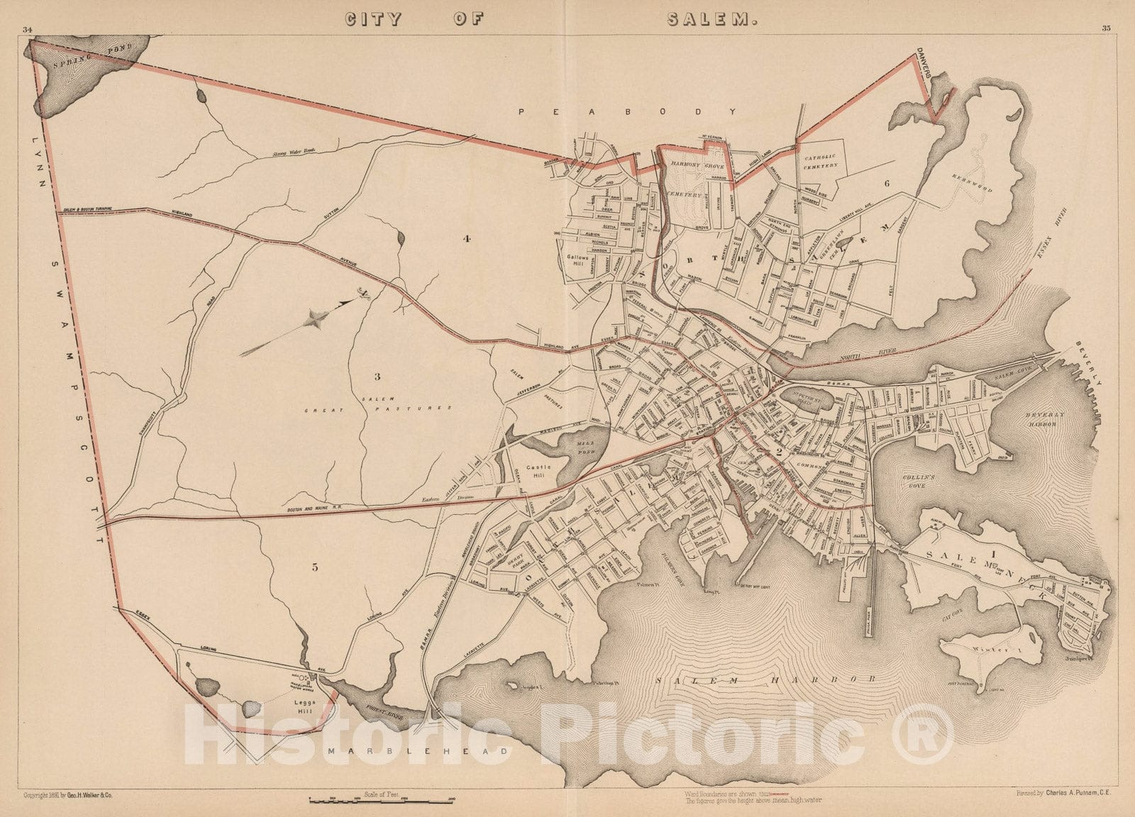 Historic Map : City of Salem, Massachusetts., 1891, Vintage Wall Art